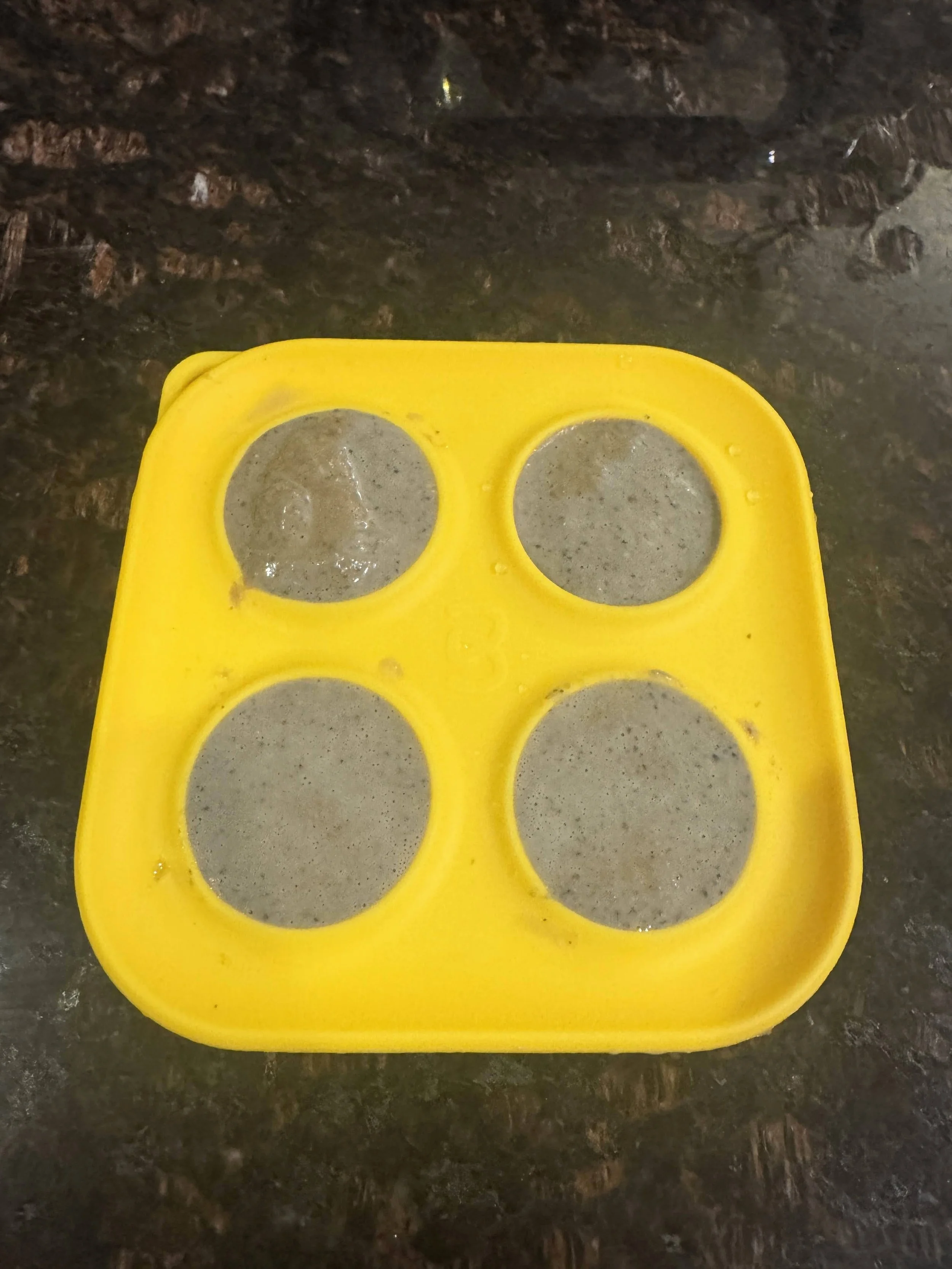 Here’s a glimpse of the treat-making process before I freeze. All healthy ingredients blended up!