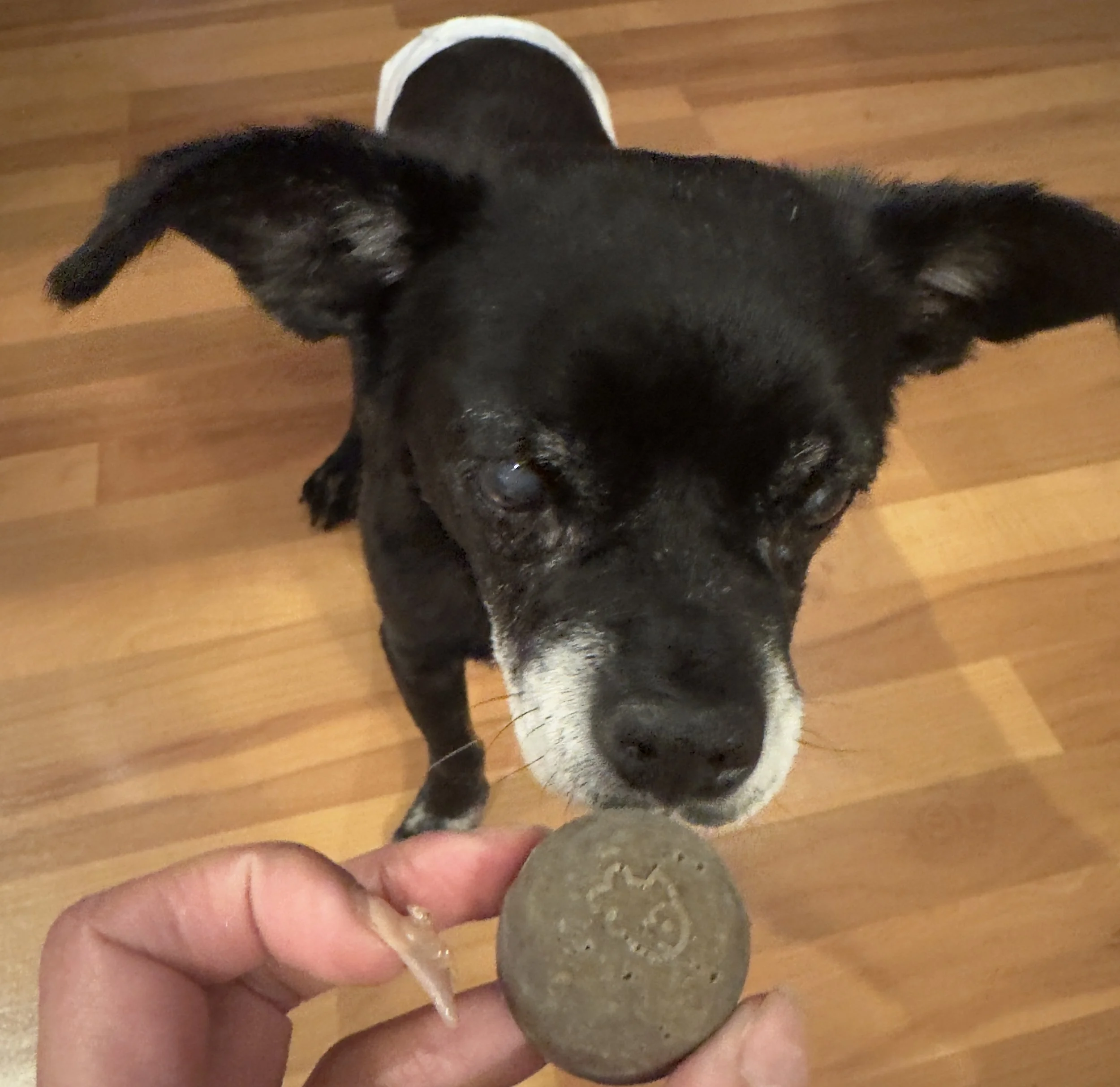 Charlie enjoying his frozen woof treats! This treat I made with the treat mold.