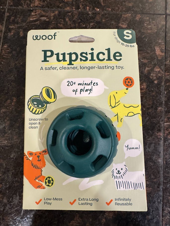 WOOF Pupsicle -The WOOF Pupsicle is a personal favorite for my dog, Charlie, but it’s even better for puppies! This interactive toy uses treat inserts designed to be licked rather than chewed, providing 20–60 minutes of mental stimulation. It’s perfect for crate training or helping anxious dogs stay calm while you’re away (check out these calming treat inserts!). For an extra challenge, try freezing it to make the fun last even longer! I use a mix of store-bought WOOF inserts, but you can also make your own treats with the treat molds, which is fun too.