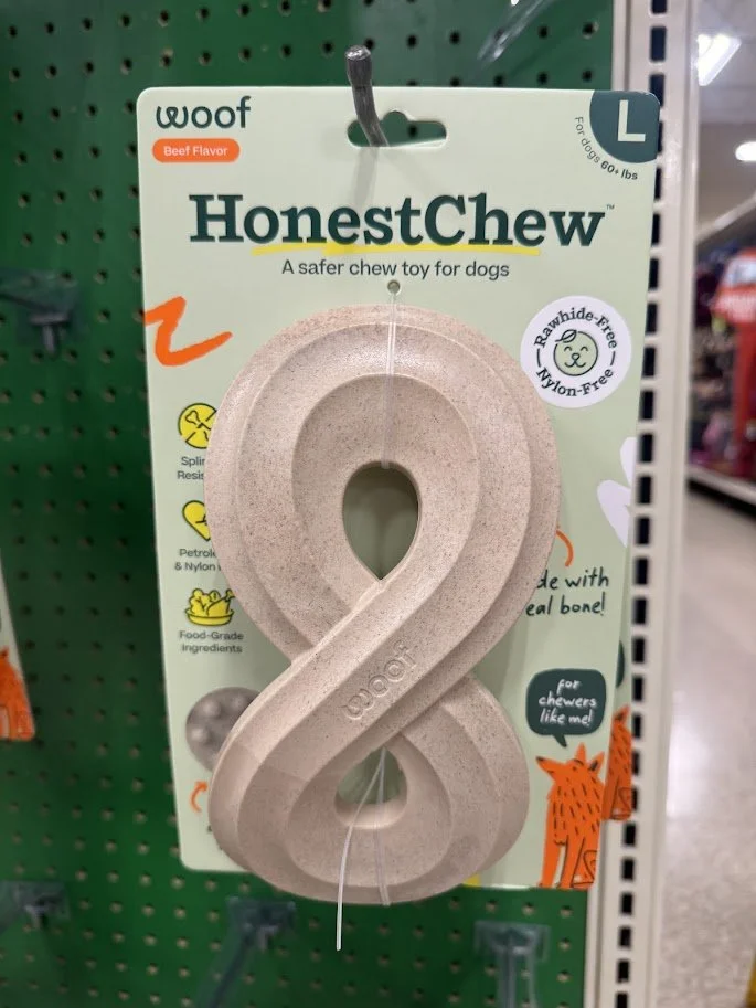 WOOF HonestChew Infinity- I absolutely love the WOOF brand dog toys, and these are no exception. Crafted with chewers in mind, they also feature high-quality materials free of nylon and plastic, which isn’t always great for chewing, especially for allergy-sensitive dogs. These are crafted with food-grade plant material to ensure safety when chewing. It also has nodes on one side to soothe that instinctive gnawing desire.